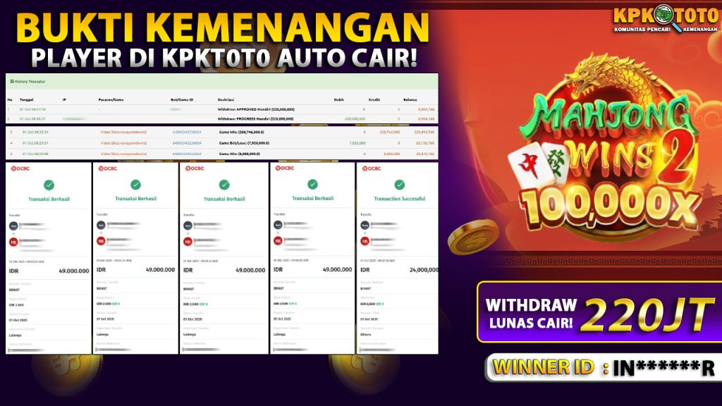 Bukti Kemenangan 01 OKTOBER 2025 Di Pragmatic Play MAHJONG WINS 2 WD 220 Juta